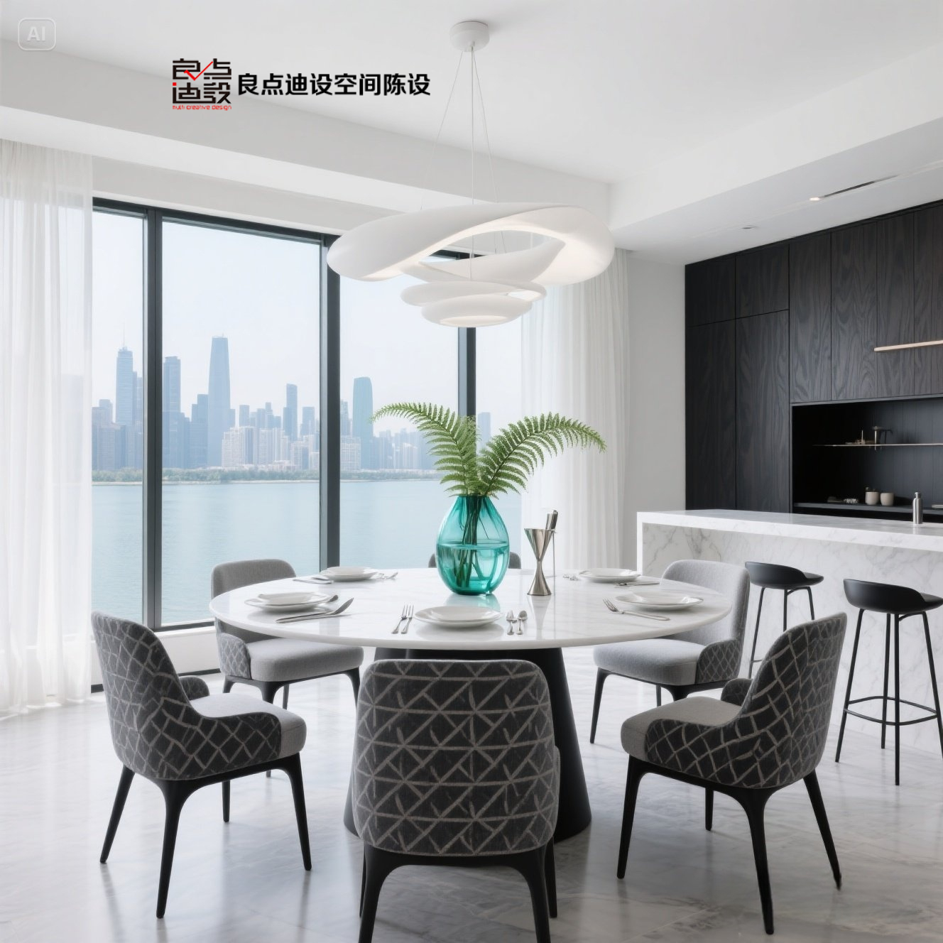這窗景餐廳軟裝設(shè)計(jì)刷爆業(yè)主群!圓桌吊燈c...